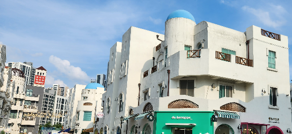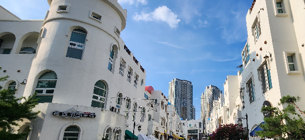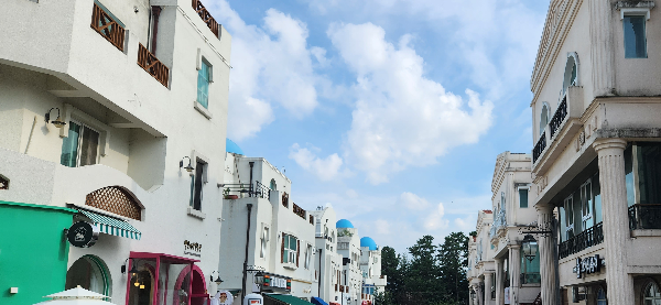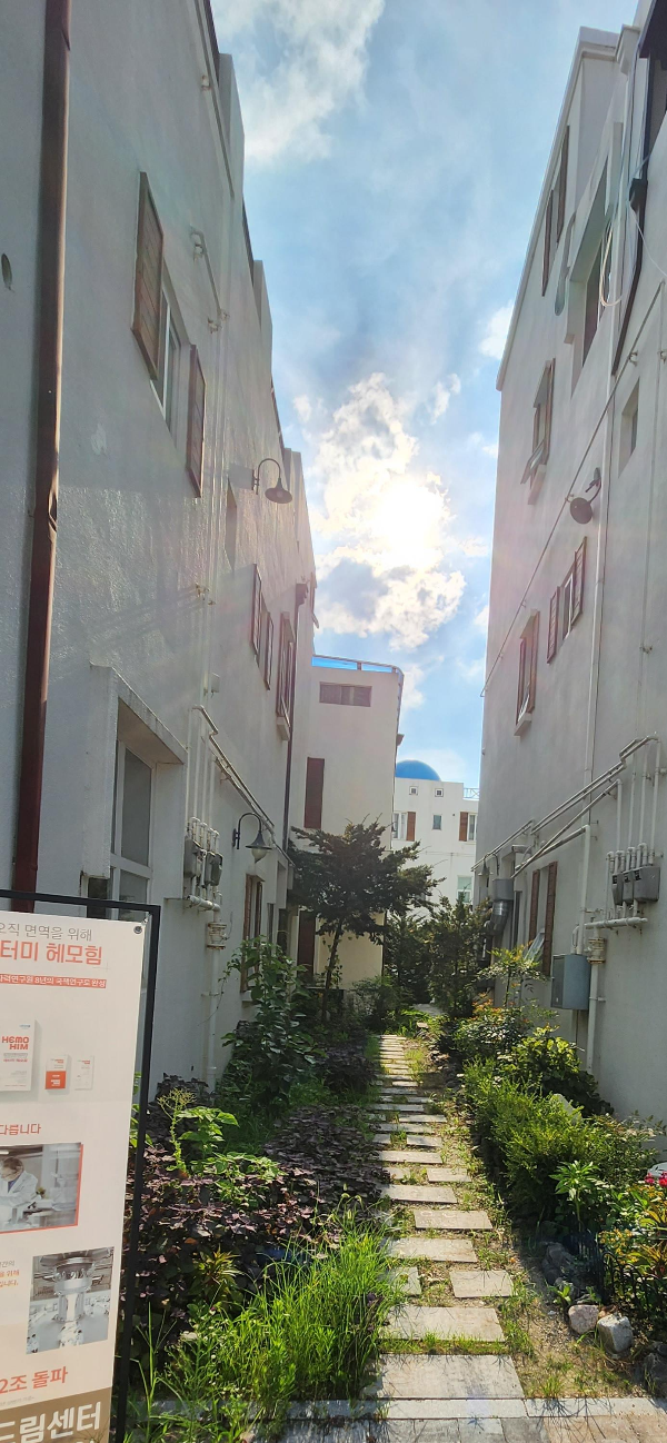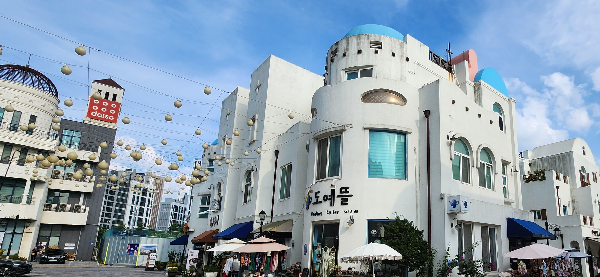 지중해 마을이라는 이름답게 유럽풍에 파란 지붕의 건물들도 보였다.