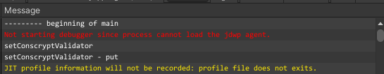 Error .hurryuppengui Not starting debugger since process cannot load the jdwp agent.