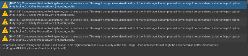 Compressed texture Rollingstone_icon is used as icon. This might compromise visual quality of the final image. Uncompressed format might be considered as better import option.